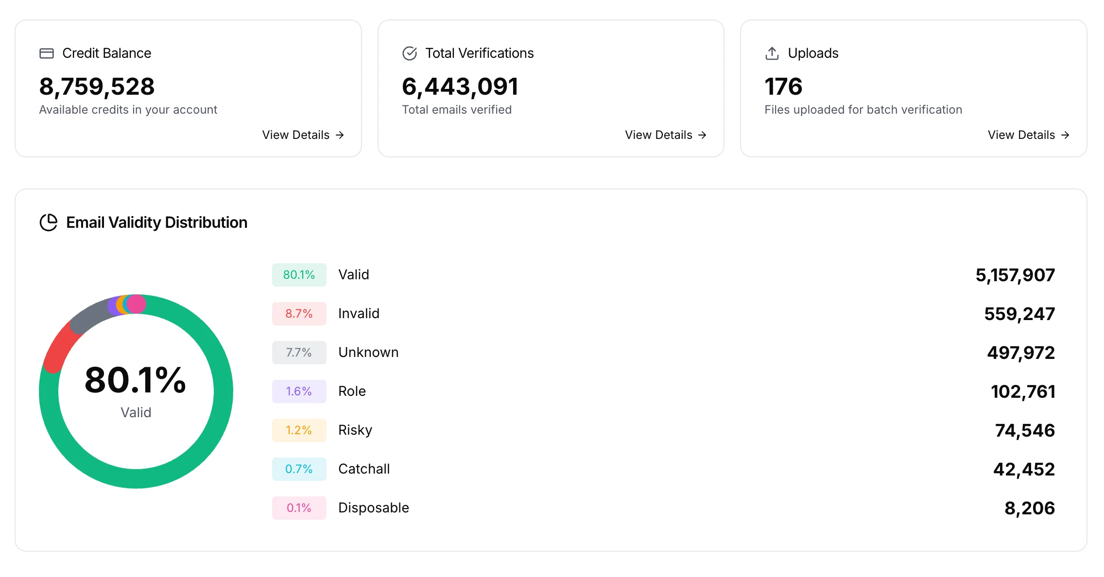 Turn large lists into clear validity distribution, status counts, and export-ready segments so sales and marketing teams can remove bad addresses before campaigns launch.