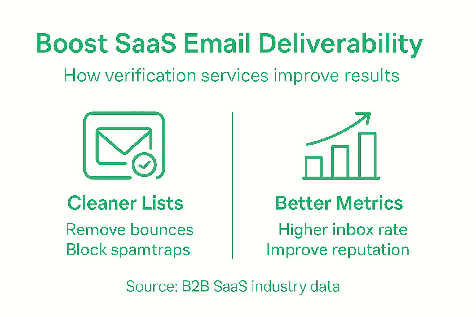 Layanan verifikasi email adalah alat yang dirancang untuk memvalidasi dan membersihkan daftar email, memastikan bahwa alamat email bersifat autentik dan mampu menerima pesan, sehingga meningkatkan kinerja pemasaran email bagi perusahaan B2B SaaS.